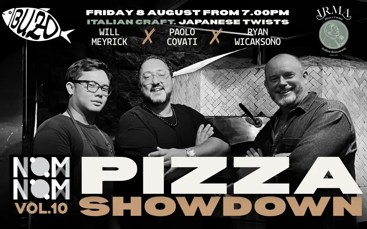 Nom Nom Vol.10: Pizza Showdown brought together Buzo and IRMA by Bacaro for a one-night clash of dough and toppings with Will Meyrick, Paolo Covati, and Ryan Wicaksono at the helm. Guests enjoyed bold flavours, DJ beats, and cocktails from Tito’s Vodka with Angie behind the bar. Huge thanks to everyone who joined, to our supporters and sponsors (thanks heaps Dripp!), and to Food for Thought and Bali Children Foundation for giving the night real purpose.